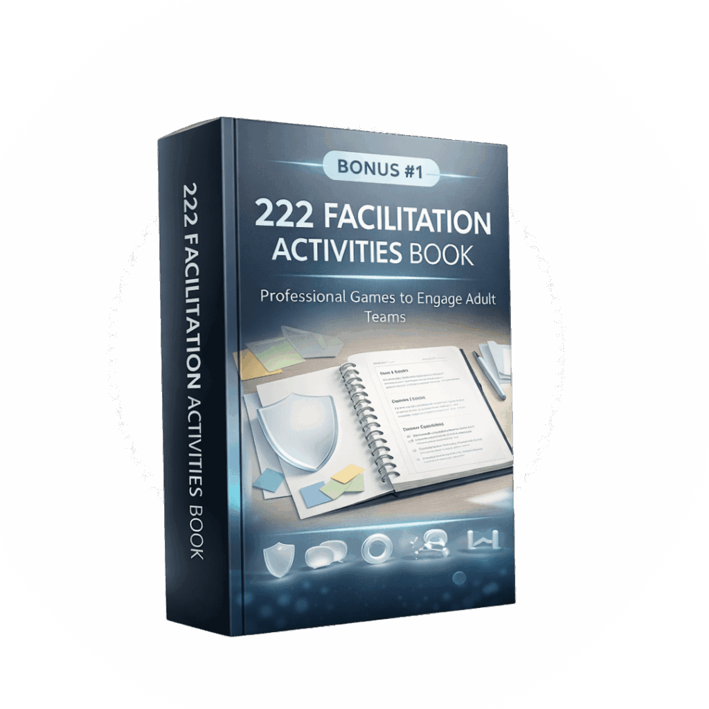 Over time, we noticed the same pattern inside companies: sessions that look fine on paper, but in the room you get silence, hesitation, and the “hierarchy effect.” That’s why we built this course—to give you a repeatable facilitation system you can run internally, with clear steps, exact wording, and plug-and-play session kits that help people participate without being forced.